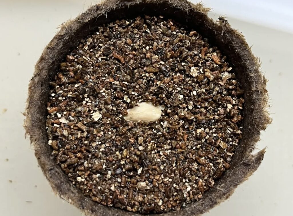 ジフィーポットにバーミキュライトを入れたものに蒔きました。